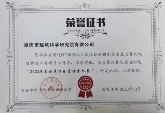 國道G230通武線項(xiàng)目,投資總估算約為13.36億元,全長5.3公里,全線采用雙向六車道一級公路標(biāo)準(zhǔn)建設(shè),設(shè)計(jì)速度80公里/小時,全線設(shè)特大橋1座。2022年6月20日正式開工建設(shè)以來,市建科院始終堅(jiān)持高效統(tǒng)籌、科學(xué)調(diào)度,在保證質(zhì)量和安全的前提下,督促項(xiàng)目監(jiān)理部切實(shí)發(fā)揮監(jiān)理職能,要求總承包項(xiàng)目部優(yōu)化施工組織,協(xié)助政府相關(guān)部門強(qiáng)化拆遷調(diào)度,為項(xiàng)目質(zhì)量、安全和投資年度目標(biāo)的實(shí)現(xiàn)打下夯實(shí)的基礎(chǔ),截止目前已完成投資約5.05億元,實(shí)現(xiàn)安全生產(chǎn)“零”事故,并獲得主管部門頒發(fā)的2022年度“優(yōu)秀項(xiàng)目管理團(tuán)隊(duì)獎”。